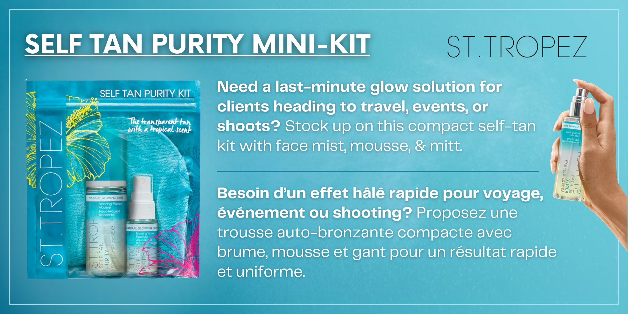 Lorsqu’un produit répond à un besoin réel, s’appuie sur une marque reconnue et reste simple à utiliser, il devient facile à recommander. Ce type de trousse permet d’introduire le bronzage de façon naturelle, sans pression. Elle soutient votre rôle de professionnelle tout en ouvrant la porte à de nouvelles opportunités en revente. Bien positionnée, la St. Tropez Mini trousse bronzante Purity devient un incontournable à avoir sous la main.